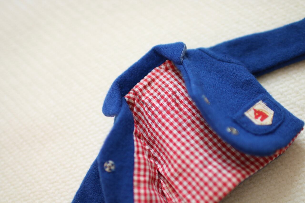 約60年前のIDEAL社タミーちゃんの正規品のお洋服です。こちらはカタログナンバー#9135・1『CHECKMATE』のブルーのブレザーとチェックのシャツです。ポケット部分の刺繍も細かく綺麗です。約60年前のお品です。生地に擦れのようなダメージがございます。お写真にてご確認ください。破れやほつれはありません。こちらはどちらとも正規品のタグはございませんので、ご了承くださいませ。