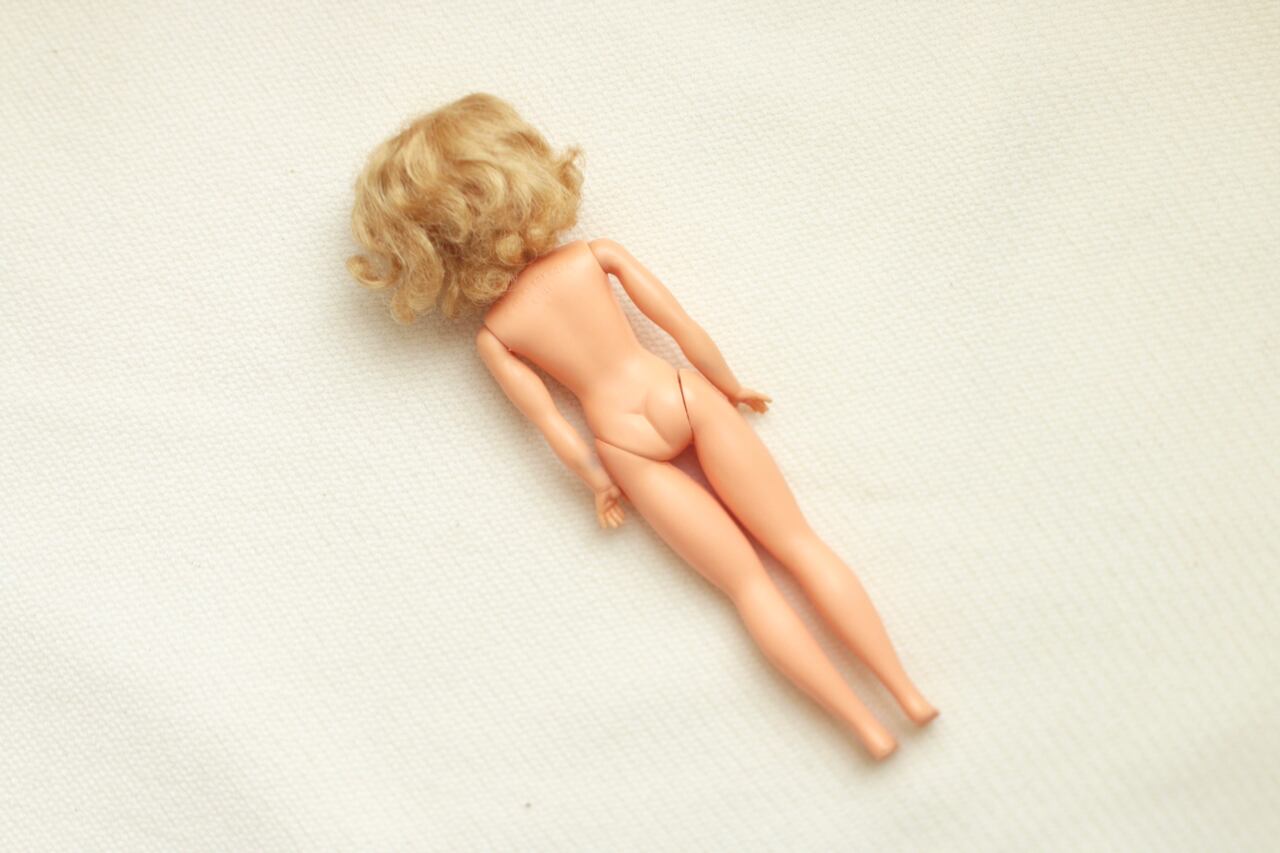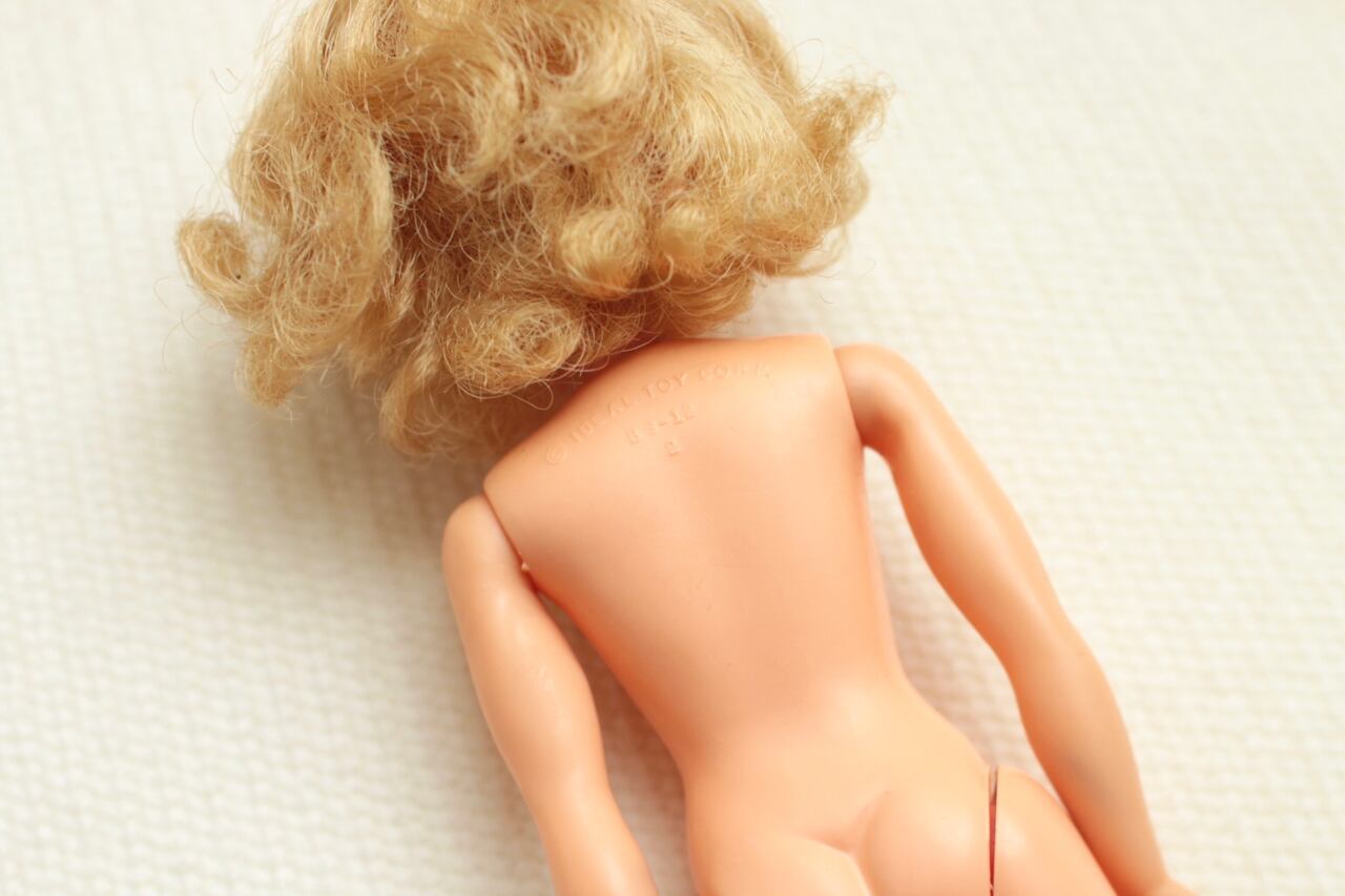 タミーちゃんのボディにはアメリカ製と日本製の2種類がありますが、今回ご紹介する子はアメリカ製のタミーちゃんです。背中には製造の年代によって1〜5のナンバーが刻印されていますが、こちらは2番のタミーちゃん。
