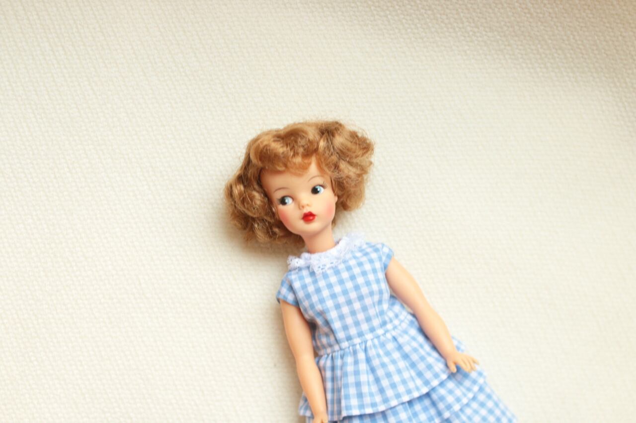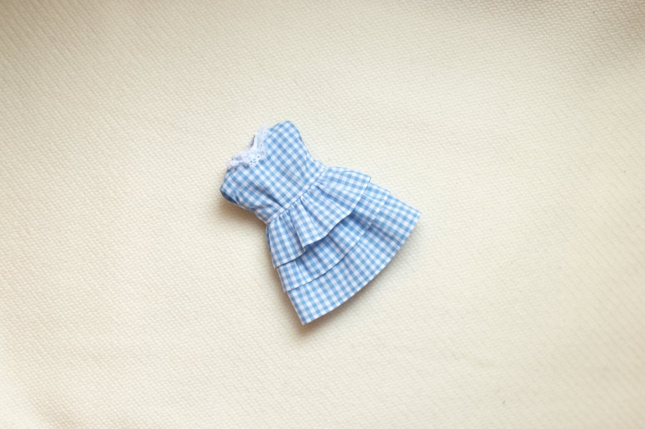 タミーちゃん・水色のギンガムチェックワンピース(ハンドメイド品)