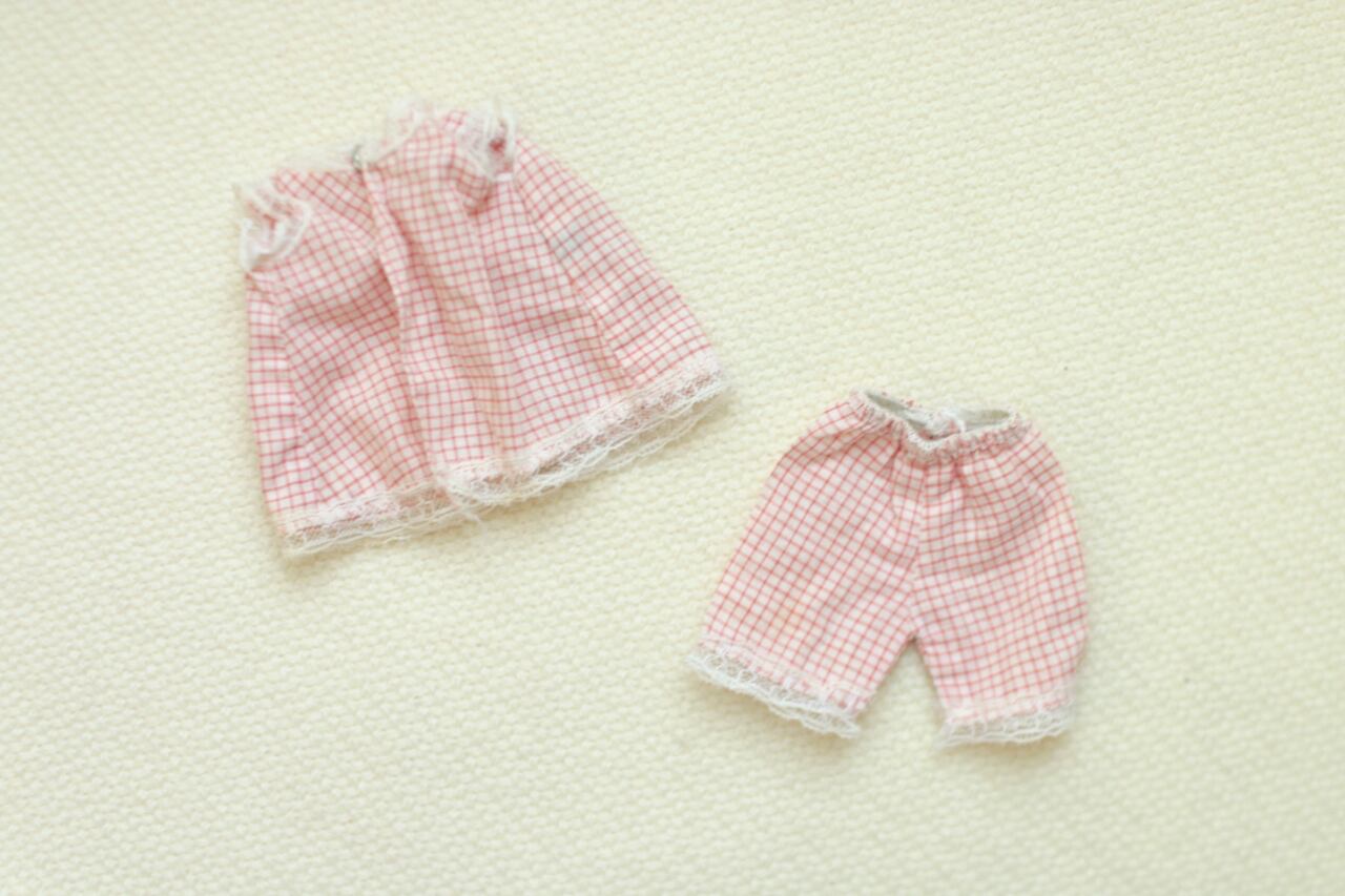 約60年前のIDEAL社タミーちゃんの正規品のお洋服です。こちらはカタログナンバー#9092・8『SLEERYTIME』ナイティとサンダルのセットです。パジャマの袖部分など痛みがあります。タミーちゃんのリラックスタイムにいかがでしょうか?
