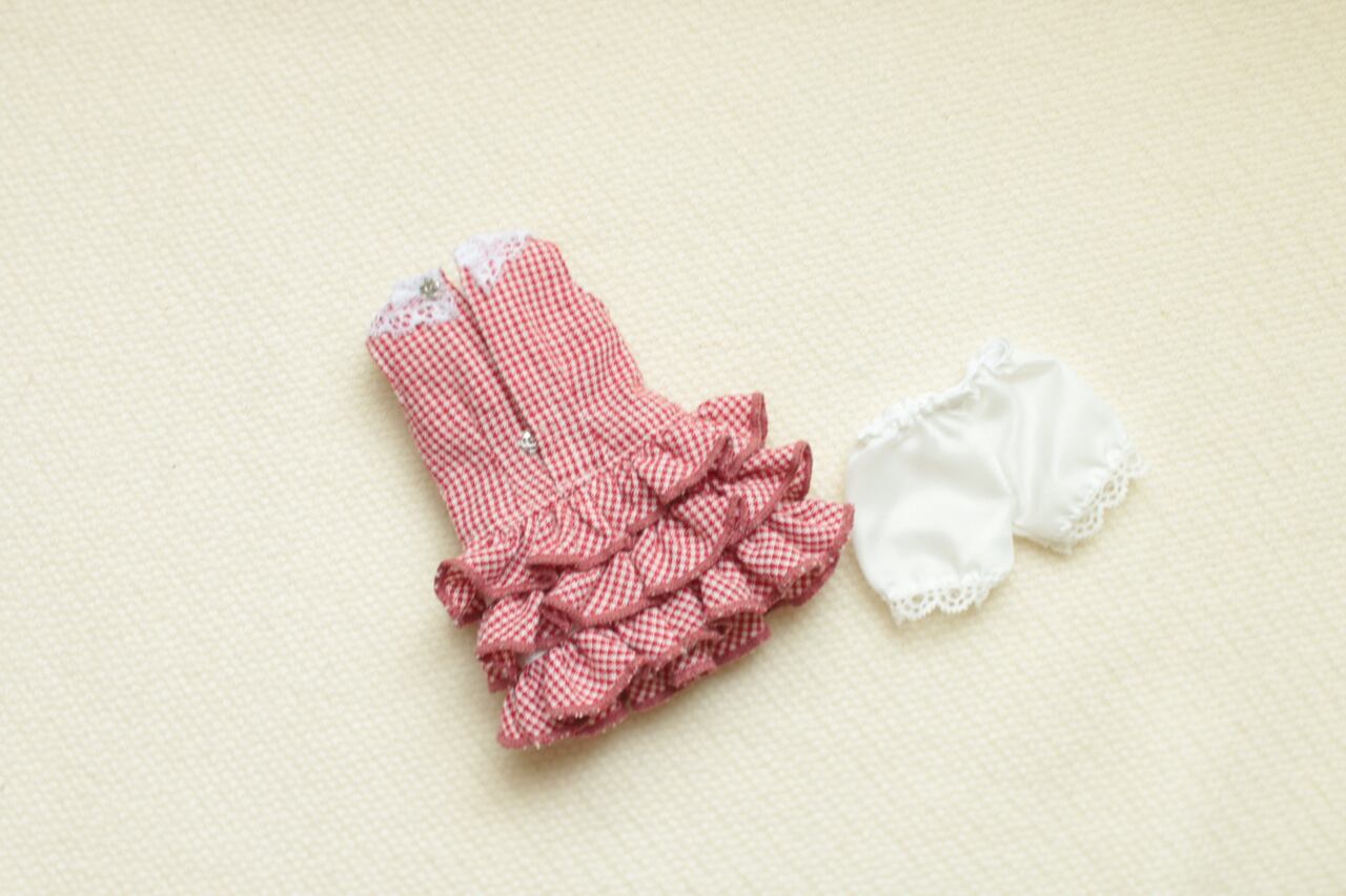 タミーちゃん・赤チェックのフリルワンピース(ハンドメイド品)