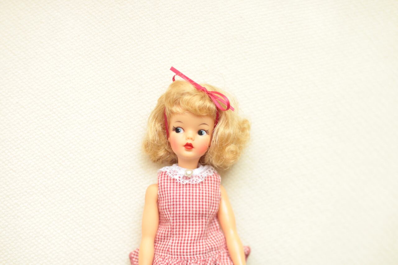 こちらはハンドメイド品となります。フリルをたっぷりあしらったワンピースを制作していただきました。タミーちゃんの溌剌としたイメージにぴったりのワンピースです。とても丁寧に美しく仕立てられた一点ものとなります。レースをあしらったかぼちゃパンツとセットとなります。