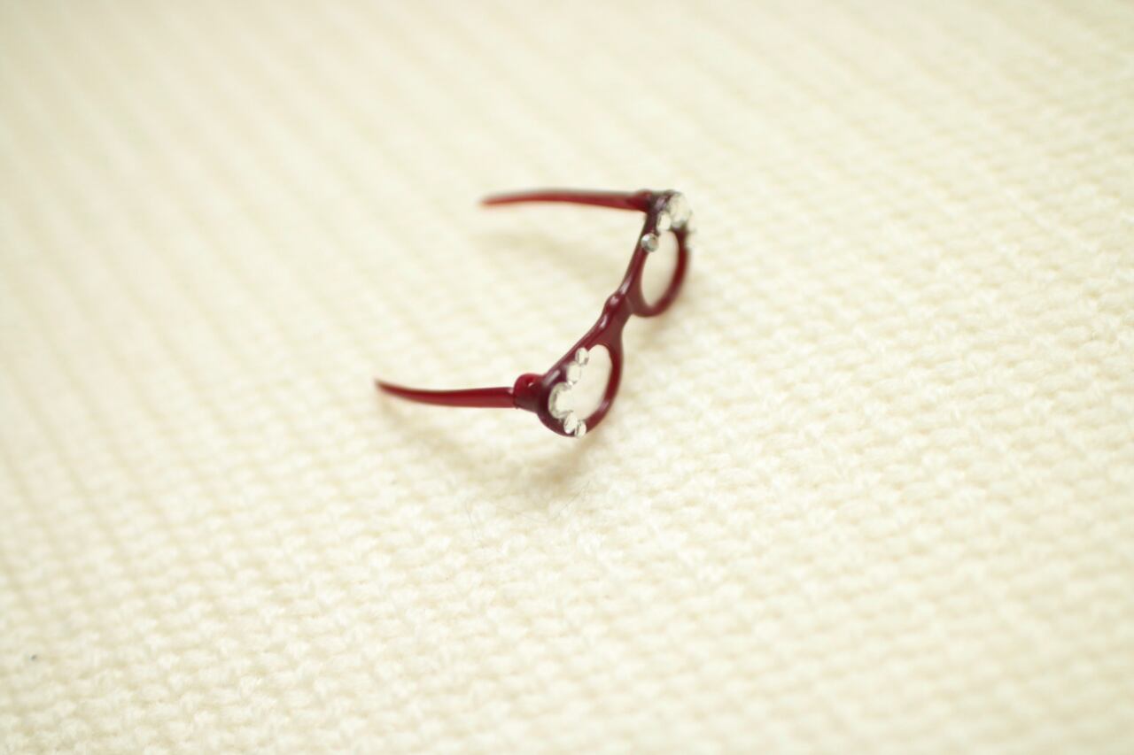 ※濃い赤のメガネのため、長期間ドールに付けたままにしておくと色移りする場合がございますのでご注意ください