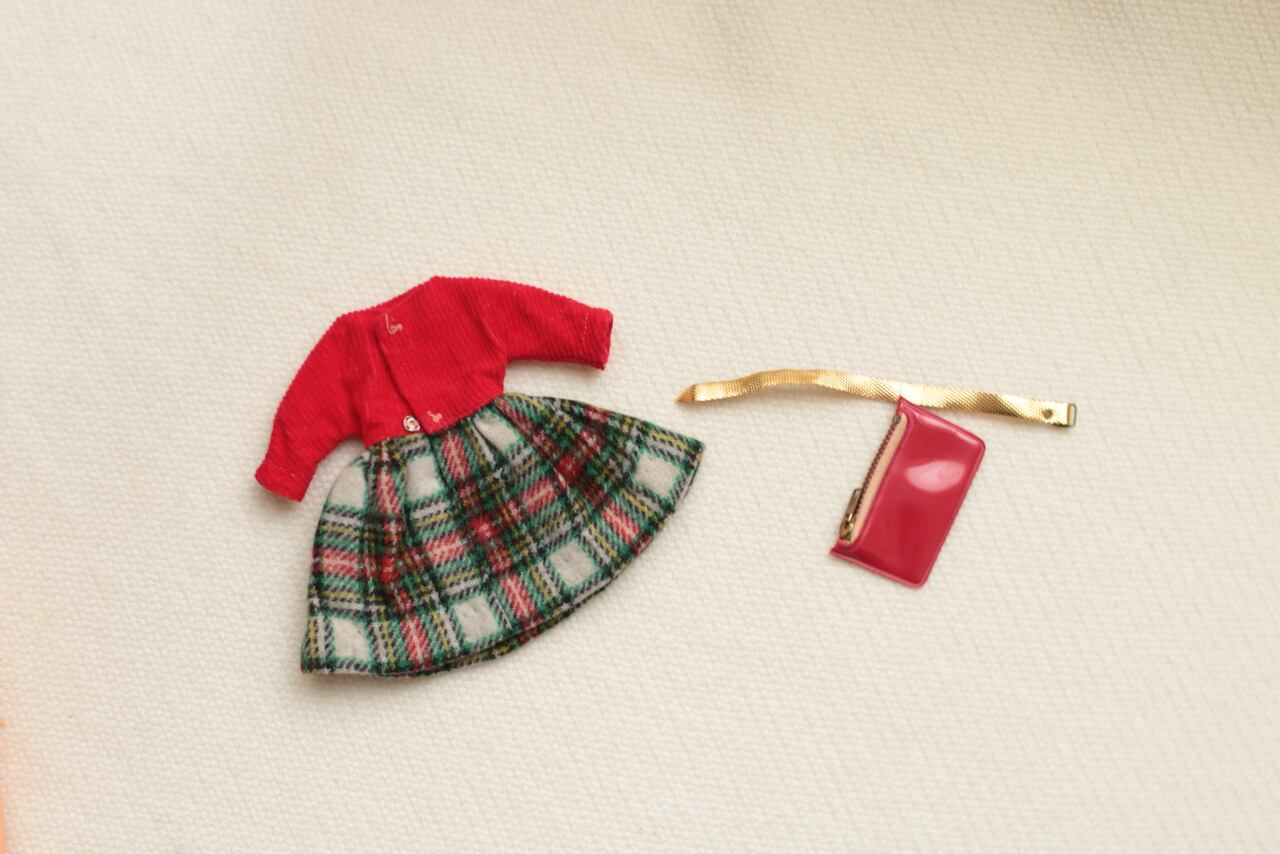 約60年前のIDEAL社タミーちゃんの正規品のお洋服です。こちらはカタログナンバー#9133-0『SCHOOL DAZY』のワンピースとベルト、ハンドバッグのセットとなります。