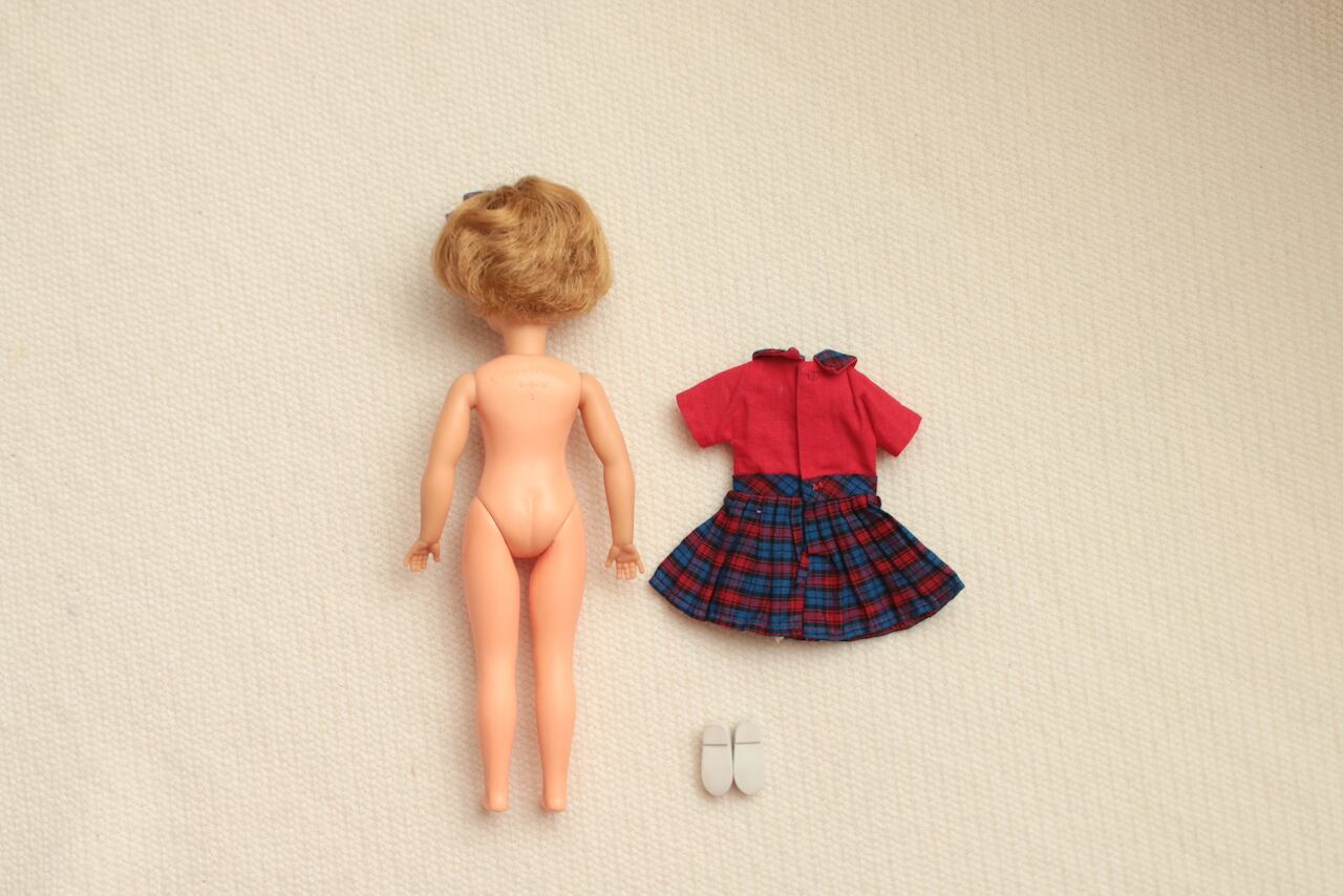 タミーちゃんのボディにはアメリカ製と日本製の2種類がありますが、今回ご紹介する子はアメリカ製のタミーちゃんです。背中には製造の年代によって1〜5のナンバー(超初期のものはナンバー無し)が刻印されていますが、こちらは1番のタミーちゃんです。