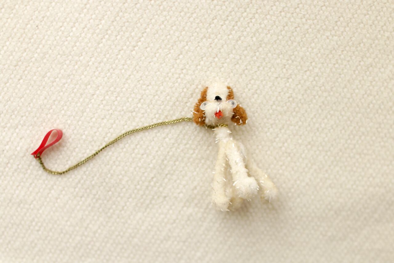 Ideal社製、タミーちゃんのペットの犬です。こちらもアウトフィットと同様、日本で作られていたものです。愛嬌のあるお顔が本当に可愛いのです。針金入りのモールで作られていて、体は自由に形を変えることができます。販売当時のチェーンと持ち手も付いています。1960年代のお品です。